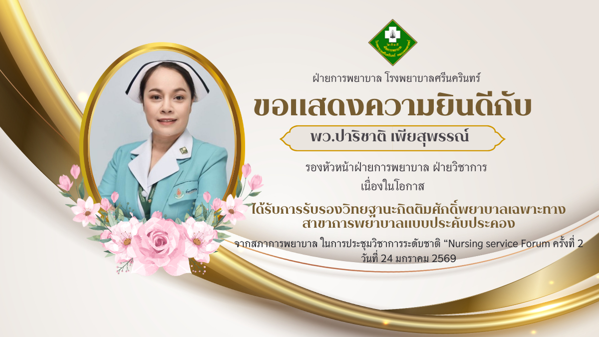 papa งานการพยาบาลอายุรกรรม1 Read More E – Book คู่มือการพยาบาล งานการพยาบาลศัลยกรรม Read More “Heartbeat Connection in ICU” Read More ขอแสดงความยินดีกับบุคลากรฝ่ายการพยาบาล Read More รองหัวหน้าฯฝ่ายวิชาการต้อนรับนักศึกษาพยาบาล Griffith University เยี่ยมชมโรงพยาบาลศรีนครินทร์ Read More การสัมนา Unplanned CPR ครั้งที่ 2/2568 Read More Load More
