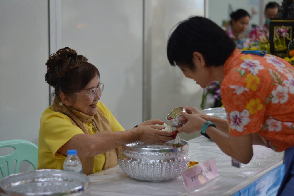 วันที่ 10 เมษายน 2568 เวลา 08.30–12.00 น. ณ บริเวณหน้าห้องประชุม บรรยาย 1–2 ฝ่ายการพยาบาลได้จัดกิจกรรมประเพณีสงกรานต์ ภายใต้ชื่องาน “ม่วนซื่น สงกรานต์ ปี 2568” เพื่อร่วมกันสืบสานวัฒนธรรมไทย สร้างความรัก ความสามัคคี และความสุขให้แก่บุคลากรทางการพยาบาลและเจ้าหน้าที่ในหน่วยงาน ภายในงานได้รับเกียรติจากผู้บริหารทางการพยาบาลเข้าร่วมกิจกรรมและร่วมประกอบพิธีรดน้ำขอพรตามประเพณีไทย โดยมีบุคลากรทางการพยาบาลเข้าร่วมอย่างพร้อมเพรียง เพื่อแสดงความเคารพและขอพรเพื่อความเป็นสิริมงคลเนื่องในโอกาสวันขึ้นปีใหม่ไทย ในโอกาสนี้ พว.เบ็ญจมาศ จันทร์นวล หัวหน้าฝ่ายการพยาบาล ได้ให้เกียรติเป็นประธานกล่าวเปิดงาน พร้อมด้วย อาจารย์ชูศรี คูชัยสิทธิ์ ตัวแทนอดีตผู้บริหารทางการพยาบาล ซึ่งได้กล่าวอวยพรแก่บุคลากรทุกคนด้วยบรรยากาศที่อบอุ่นและเปี่ยมไปด้วยความปรารถนาดี นอกจากนี้ ภายในงานยังมีกิจกรรมที่สร้างความสุขและความสนุกสนาน อาทิ การแต่งกายด้วยชุดไทยหรือผ้าไทยสีสันสดใส การถ่ายภาพร่วมกันเพื่อเก็บเป็นที่ระลึก และรับประทานอาหารร่วมกัน บรรยากาศโดยรวมเต็มไปด้วยรอยยิ้ม ความอบอุ่น และความผูกพันของบุคลากรทุกคนในฝ่ายการพยาบาล และนับเป็นอีกหนึ่งกิจกรรมที่ช่วยสืบสานคุณค่าทางวัฒนธรรม พร้อมทั้งส่งเสริมขวัญและกำลังใจให้กับเจ้าหน้าที่ในองค์กรอย่างยั่งยืน