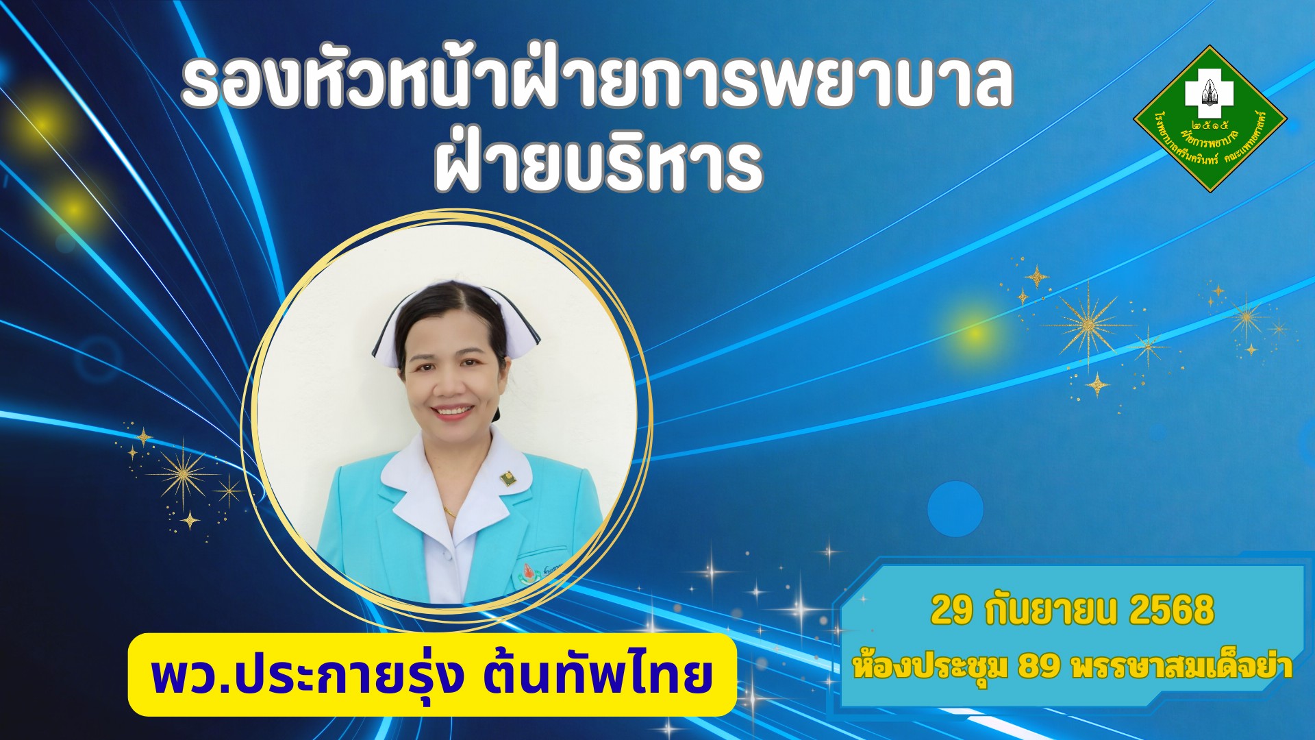 เมื่อวันจันทร์ที่ 29 กันยายน 2568 ฝ่ายการพยาบาลได้จัดประชุม หัวหน้างานการพยาบาล / หัวหน้าหอผู้ป่วย / หัวหน้าหน่วยงาน ครั้งที่ 6/2568 ณ ห้องประชุม 89 พรรษา สมเด็จย่า โดยมีผู้บริหารและบุคลากรพยาบาลเข้าร่วมประชุมอย่างพร้อมเพรียง