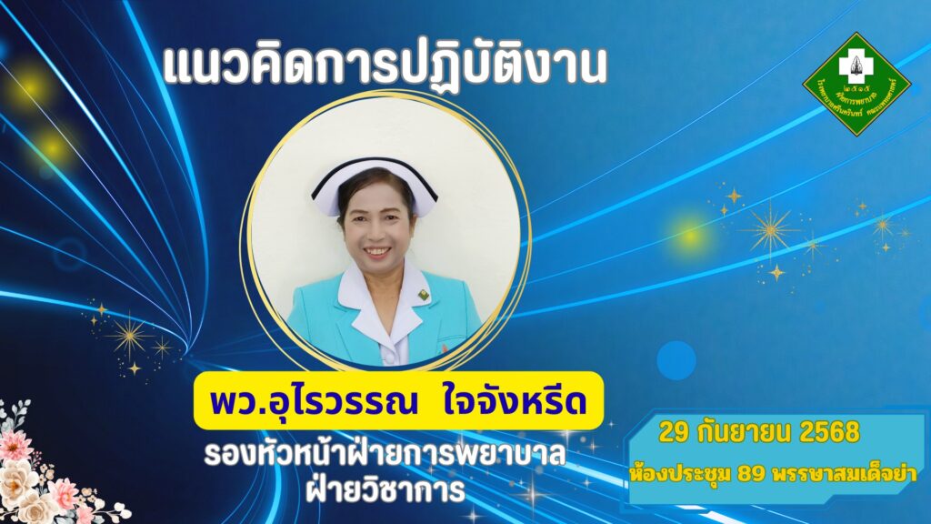 ทั้งนี้ได้รับเกียรติจาก นางสาวอุไรวรรณ ใจจังหรีด อดีตรองหัวหน้าฝ่ายการพยาบาลฝ่ายวิชาการ มาร่วมถ่ายทอดแนวคิดและประสบการณ์การทำงานด้านการพยาบาล เน้นย้ำความสำคัญของ “การทำงานด้วยหัวใจแห่งความเป็นพยาบาล ความสามัคคี และความมุ่งมั่นเพื่อผู้ป่วย” ซึ่งสร้างแรงบันดาลใจและพลังบวกให้แก่ทีมบริหารชุดใหม่และผู้เข้าร่วมประชุมทุกคน