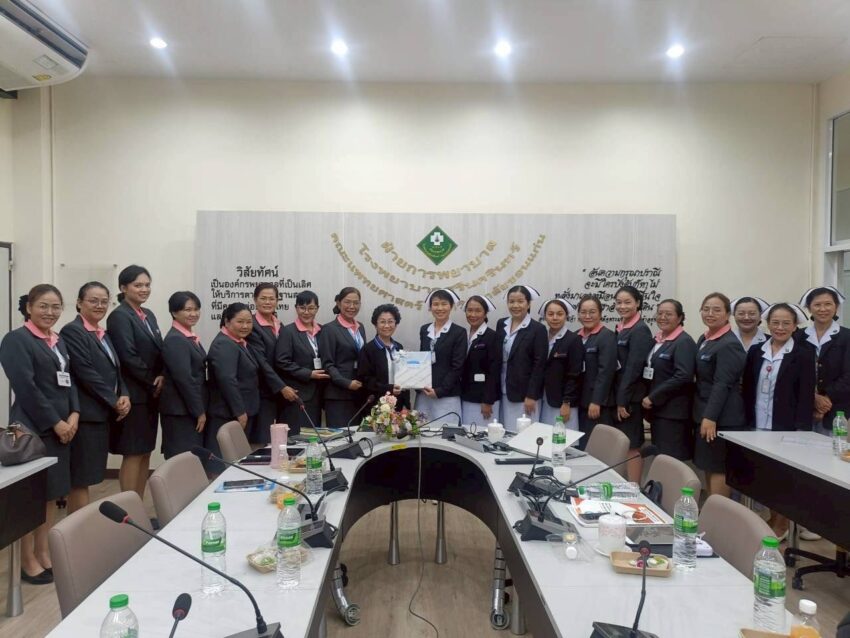 ฝ่ายการพยาบาล โรงพยาบาลศรีนครินทร์ คณะแพทยศาสตร์ มหาวิทยาลัยขอนแก่น นำโดย พว.ธิดารัตน์ เกษแก้วกาญจน์ หัวหน้าฝ่ายการพยาบาล พร้อมด้วย พว.ประกายรุ่ง ต้นทัพไทย รองหัวหน้าฝ่ายบริหารทรัพยากรบุคคล, พว.อมรรัตน์ ทองสวัสดิ์ รองหัวหน้าฝ่ายคลินิกบริการ และ พว.ปาริชาติ เพียสุพรรณ์ รองหัวหน้าฝ่ายวิชาการและวิจัย ให้การต้อนรับ ผศ.บุศรา กาญจบัตร อาจารย์ประจำสาขาวิชาการศึกษาวิจัยและบริหารการพยาบาล คณะพยาบาลศาสตร์ มหาวิทยาลัยขอนแก่น พร้อมผู้เข้าอบรมหลักสูตรการพยาบาลเฉพาะทาง สาขาการจัดการทางการพยาบาล รุ่นที่ 35 จำนวน 12 คน การศึกษาดูงานครั้งนี้มีวัตถุประสงค์เพื่อเรียนรู้โครงสร้างการบริหารงานของโรงพยาบาลและฝ่ายการพยาบาล รวมถึงเยี่ยมชมการดำเนินงานจริง ณ ฝ่ายการพยาบาล โรงพยาบาลศรีนครินทร์ เพื่อเสริมสร้างความเข้าใจด้านการจัดการทางการพยาบาลและแนวทางการบริหารงานอย่างมีประสิทธิภาพ ฝ่ายการพยาบาลฯ หวังเป็นอย่างยิ่งว่าการแลกเปลี่ยนความรู้และประสบการณ์ในครั้งนี้ จะช่วยพัฒนาศักยภาพของบุคลากรทางการพยาบาลและสร้างเครือข่ายความร่วมมือที่เข้มแข็งระหว่างสถาบันต่อไป